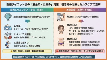 そこで今回は、医療ダイエット後に起こる「たるみ」の原因と、それを解消するための「正しいセルフケア」、そして本気で引き締めるための「最新美容医療」について解説します。